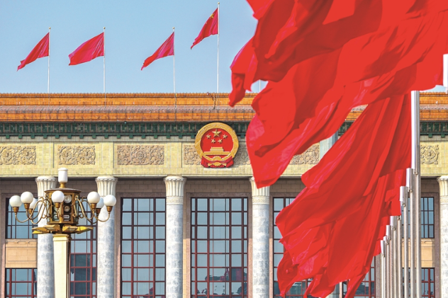北京市,人民大会堂前红旗飘扬。资料图片