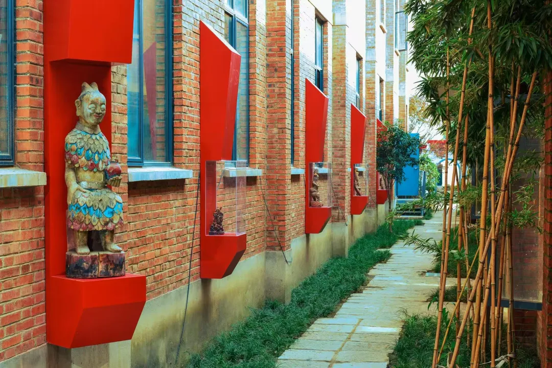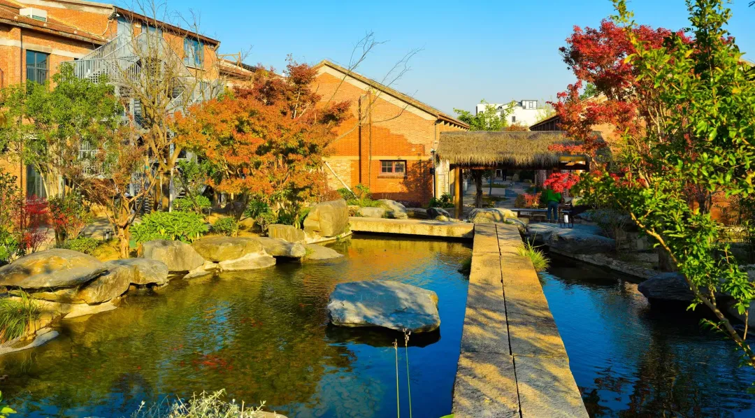 上世纪50年代初,苏州五交化集团在城市东北一角建起了一片仓储用房。建筑因坐落在北园路19号而被称作北园仓库。北园仓库的规模伴随着苏州工业的快速发展一步步扩大,逐步形成了以红砖清水墙和人字洋瓦屋面为主的仓库建筑群。2003年,五交化公司转制为函数集团,北园仓库继续作为函数集团子公司美罗商城的仓库使用。 然而斗转星移,北园仓库的土地价值和经济效益日趋下降,尤其是近年来,随着电商时代的来临和城市商贸功能的转型,仓储需求进一步减弱,建筑的功能性同步下降。与此同时,历经岁月和风雨侵蚀,仓库建筑老、破、旧、危等问题日益显现,建筑风格也与周边传统苏式风格相去甚远。园区改造,迫在眉睫。习近平总书记在中央城市工作会议上提出,“完善历史文化保护传承体系,完善城市风貌管理制度,保护城市独特的历史文脉、人文地理、自然景观”。城市更新不仅是空间形态的优化、功能品质的提升,也是延续城市文化脉络的重要途径。在改造伊始,园区就确定了“修旧如旧”的原则,在保留红砖瓦房群落、苏式历史建筑以及工厂车间建筑原有面貌的同时,融合叠石理水、移树建亭等苏州传统园林要素,构建出别具一格的山水园景,也开创了工业遗址与文化景观相融合的空间构造新模式。 如今,漫步在美罗创意园中,游客可沉浸式感受潺潺流水、曼妙琴声,欣赏老树石桥、碑帖书法,还有众多工艺精湛、细节入微的古韵木雕,在方寸之间尽显东方美学。步入建筑内部,又仿佛置身于一个个新潮、时尚、国际化的世界。在澳新馆,野生的植被狂野又原始,让人感受到充满生命力的澳大利亚风情;在日本馆,小窗、障子、深檐、格栅将日式侘寂风格拉满,整个空间灵动柔和、光影层次丰富;在意大利馆,流行音乐和古典歌剧分别代表了意大利人对现实生活的热情和深厚的历史文化底蕴,现代与传统在这里碰撞、交织。