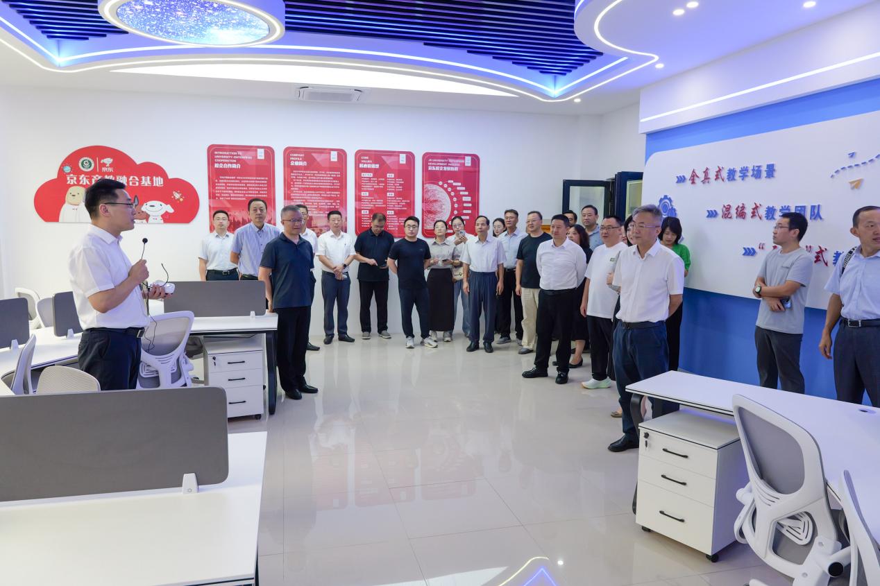 参会活动人员先后走进南师大泰州学院京东产教融合基地与梅兰春南师大泰州学院直播基地,观摩了产教融合模式下企业运营与人才培养的创新实践,以及传统品牌借助直播电商实现转型升级的探索成果。