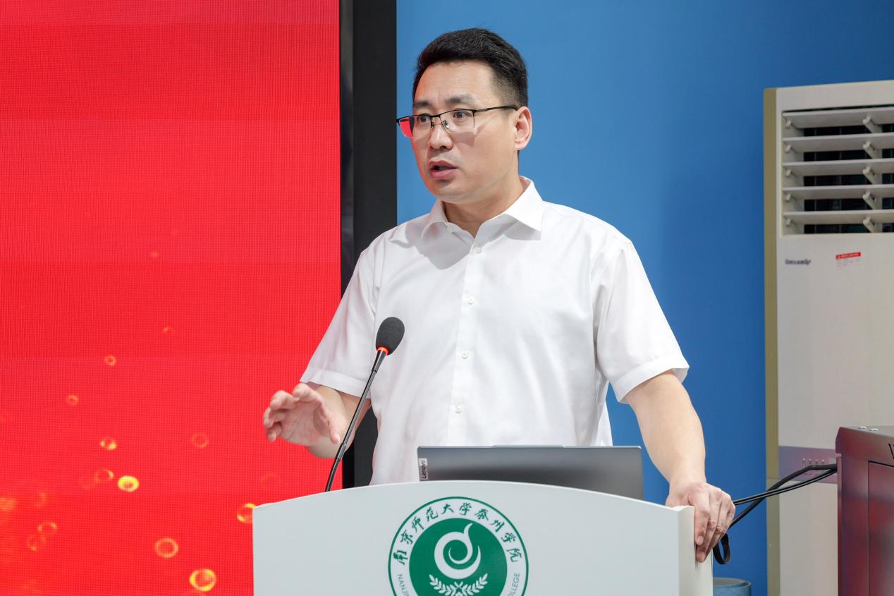 南师大泰州学院商学院院长刘尧飞致辞,他表示,高校作为人才培养的主阵地,将充分发挥学科优势,深化产教融合,为企业税务合规领域输送更多既懂理论又善实践的专业人才。