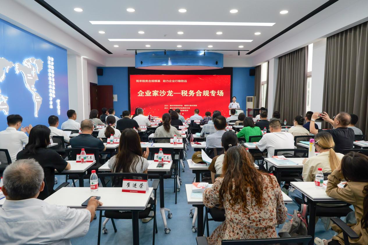 为切实强化企业税务合规意识,搭建“政企学”多方交流合作平台,助力企业在合规轨道上行稳致远,9月26日上午,市税务学会携手南师大泰州学院、江苏方成税务师事务所在南京师范大学泰州学院联合举办“企业家沙龙”税务合规专场活动,省税务学会副会长赵灿奇、市民政局四级调研员、社管处处长戴祝英等应邀出席,市税务学会会员单位中全市头部企业负责人、前十强税务师事务所负责人、驻泰高校师生代表共50多人齐聚一堂,共话税务合规新路径。